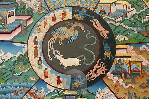 Coolest Bildagentur Mauritius Images Wheel Of Life Wheel Of Samsara Showing Rooster Snake And Pig Kopan Monastery Kathmandu Nepal Asia